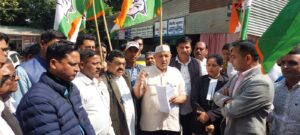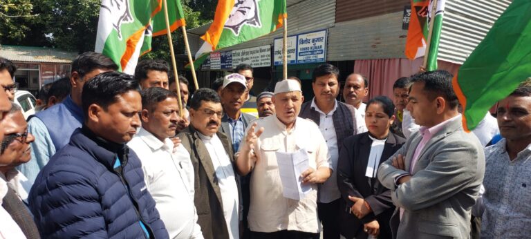 रामनगर में कांग्रेस का प्रदर्शन, भाजपा विधायक उमेश शर्मा काऊ की गिरफ्तारी की मांग।