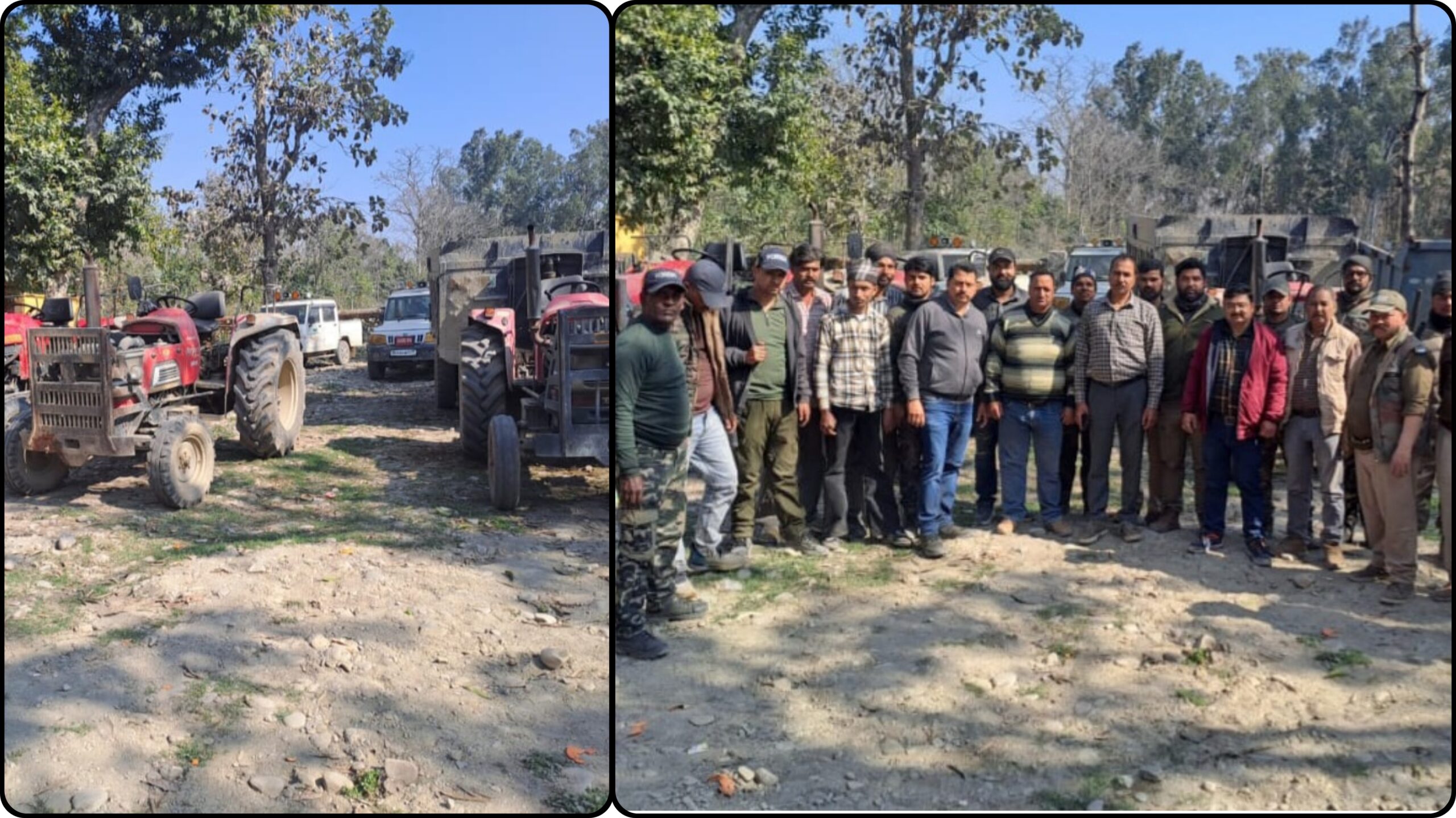 कोसी नदी में अवैध खनन पर वन विभाग का छापा, 3 ट्रैक्टर सीज।