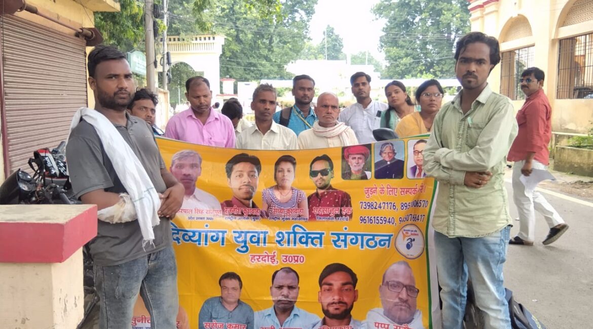 दिव्यांग युवा शक्ति संगठन ने 27 सूत्रीय माँगों को लेकर हरदोई में सौंपा ज्ञापन।