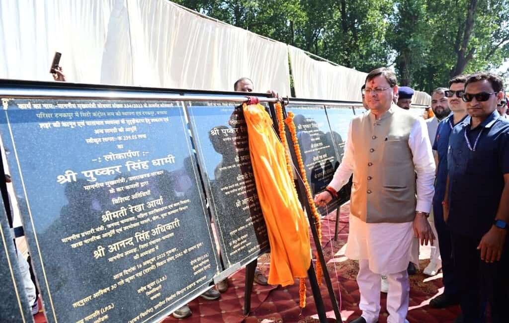 मुख्यमंत्री पुष्कर सिंह धामी ने गुरुवार को क्रीड़ा स्थल छीनीगोठ, टनकपुर में आयोजित “मुख्यमंत्री सशक्त बहना उत्सव” कार्यक्रम के दौरान टनकपुर में नवनिर्मित मुख्यमंत्री कैंप कार्यालय भवन सहित कुल 15 महत्त्वपूर्ण विकास योजनाओं का लोकार्पण एवं शिलान्यास किया।