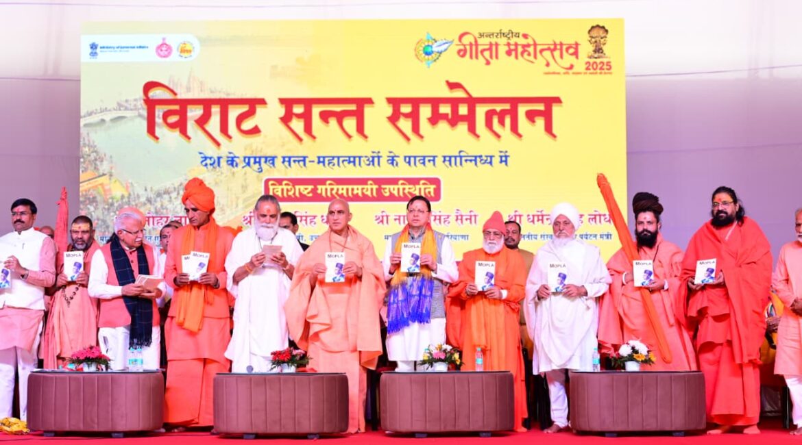 मुख्यमंत्री पुष्कर सिंह धामी ने शनिवार को कुरुक्षेत्र, हरियाणा में अन्तर्राष्ट्रीय गीता महोत्सव में प्रतिभाग किया। इस अवसर पर अपने संबोधन में मुख्यमंत्री ने कहा कि धर्म क्षेत्र कुरुक्षेत्र की पवित्र भूमि पर भगवान श्रीकृष्ण ने अर्जुन को जो दिव्य उपदेश प्रदान किया, वही श्रीमद्भगवद्गीता के रूप में मानवता का शाश्वत ज्ञान बनकर पूरे विश्व को दिशा दिखा रहा है। इस भूमि से धर्म, कर्तव्य, सत्य, निष्काम कर्म और आत्मोन्नति का संदेश सम्पूर्ण मानव समाज में प्रवाहित हुआ। इस भव्य महोत्सव के माध्यम से गीता के संदेश को जन-जन तक पहुँचाने के लिए उन्होंने हरियाणा सरकार एवं स्वामी ज्ञानानंद जी महाराज के प्रति अपनी कृतज्ञता प्रकट की।
