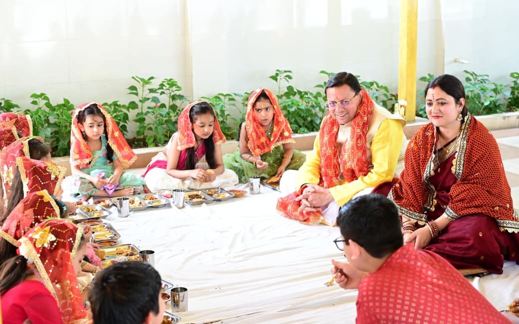 मुख्यमंत्री श्री पुष्कर सिंह धामी ने रामनवमी के पावन अवसर पर मुख्यमंत्री आवास में किया कन्या पूजन, प्रदेश की खुशहाली की कामना