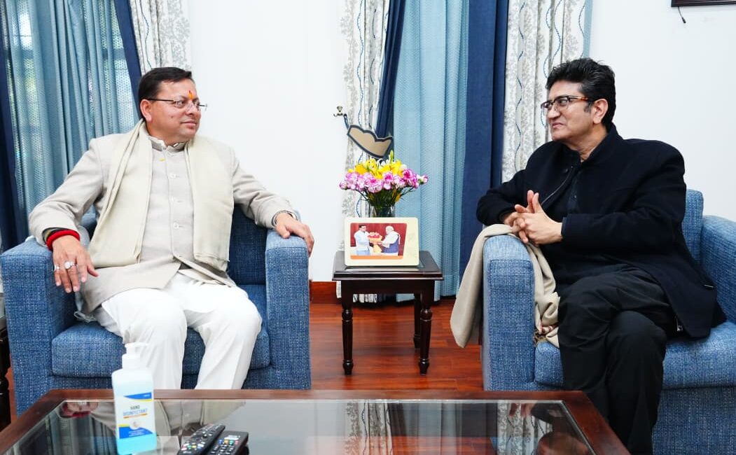 मुख्यमंत्री पुष्कर सिंह धामी से सीबीएफसी अध्यक्ष प्रसून जोशी की शिष्टाचार भेंट