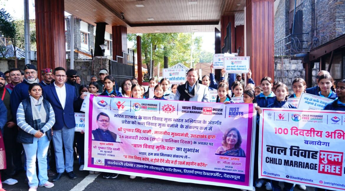 मुख्यमंत्री श्री पुष्कर सिंह धामी ने शनिवार को मुख्यमंत्री आवास में समर्पण सोसाइटी फॉर हेल्थ रिसर्च एंड डेवलपमेंट द्वारा देहरादून में बाल विवाह की रोकथाम के लिए संचालित बाल विवाह मुक्ति रथ का फ्लैग ऑफ किया।