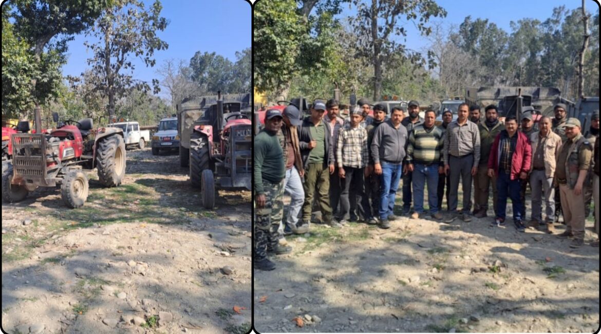 कोसी नदी में अवैध खनन पर वन विभाग का छापा, 3 ट्रैक्टर सीज।