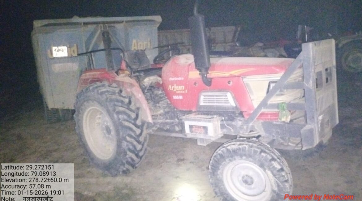 कोसी नदी में अवैध खनन पर वन विभाग की सख्त कार्रवाई, दो ट्रैक्टर–ट्रॉलियां पकड़ी गईं।