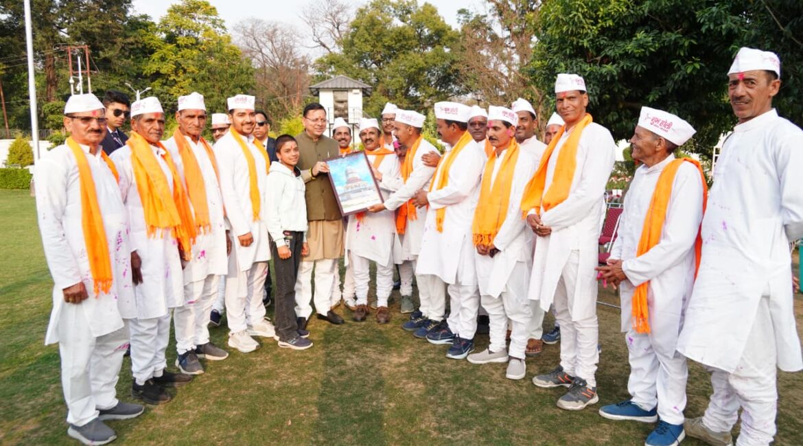 मुख्यमंत्री पुष्कर सिंह धामी को चम्पावत के होल्यारों ने दी होली की शुभकामनाएं।