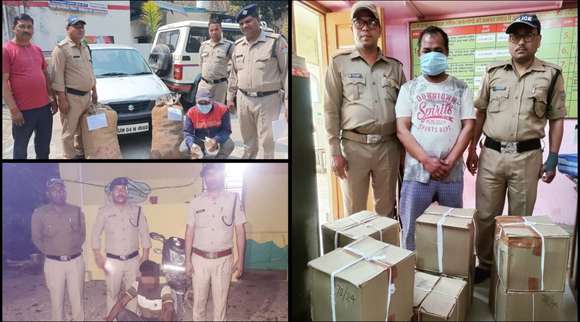 तथा 02 अन्य में 123 पाउच व 28 पाउच कच्ची शराब के साथ 02 को गिरफ्तार किया है।