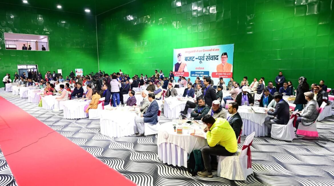बजट पूर्व संवाद कार्यक्रम का संचालन अपर सचिव मनमोहन मैनाली द्वारा किया गया। कार्यक्रम में कृषि, उद्योग, व्यापार, पंचायत, शहरी विकास आदि से जुड़े 200 से अधिक प्रतिनिधियों ने प्रतिभाग किया। जिला पंचायत पौड़ी की अध्यक्षा रचना बुटोला, मेयर नगर निगम श्रीनगर आरती भंडारी, ऋषिकेश शंभू पासवान, कोटद्वार शैलेन्द्र रावत, रुड़की अनीता देवी अग्रवाल, नगर पालिकाध्यक्ष पौड़ी हिमानी नेगी, आयुक्त गढ़वाल/सचिव उद्योग विनय शंकर पांडे, पुलिस महानिरीक्षक राजीव स्वरूप, संयुक्त सचिव सुरेन्द्र सिंह रावत, आयुक्त ग्राम विकास अनुराधा पाल, अपर सचिव डॉ. आनंद श्रीवास्तव, डॉ. सौरभ गहरवार, अभिषेक रोहिला, वरिष्ठ पुलिस अधीक्षक सर्वेश पंवार, मुख्य विकास अधिकारी गिरीश गुणवंत, अपर ज़िलाधिकारी अनिल गर्ब्याल, संयुक्त मजिस्ट्रेट दीक्षिता जोशी, जिलाध्यक्ष भाजपा कमल किशोर रावत सहित विभिन्न विभागों के अधिकारी, कृषक, उद्यमी, जनप्रतिनिधि तथा हितधारक मौजूद रहे।