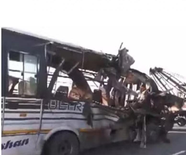 बस और ट्रक की टक्कर में 14 की मौत, 27 यात्री गंभीर रूप से घायल।