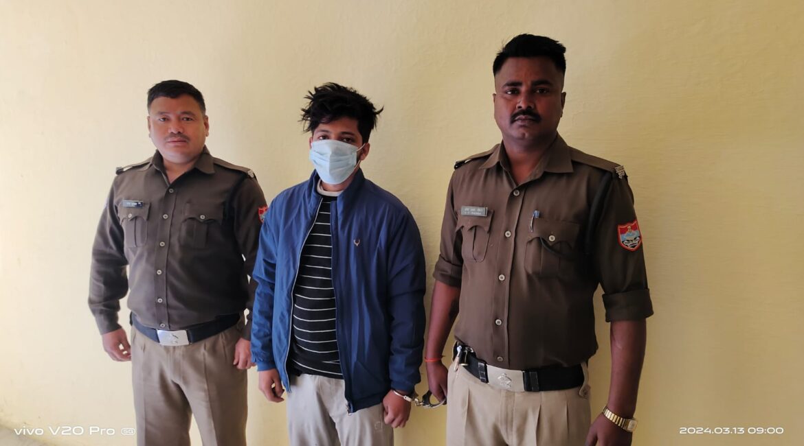 *श्री प्रकाश चंद्र एसपी सिटी हल्द्वानी* तथा *श्री नितिन लोहनी सीओ हल्द्वानी के पर्यवेक्षण* में *श्री विमल कुमार मिश्रा थानाध्यक्ष काठगोदाम के नेतृत्व* में पुलिस टीम द्वारा दिनांक 12/03/2024 को थाना क्षेत्र मे कानून/शान्ति व्यवस्था/यातायात व्यवस्था एवं अवैध मादक पदार्थो की तस्करी की रोकथाम करने हेतु चैकिंग के दौरान को शीशमहल रामलीला मैदान के पास *फैजल पुत्र सोहेल* निवासी शारदा फैक्ट्री के सामने शीशमहल थाना काठगोदाम जनपद नैनीताल को *13.35 ग्राम स्मैक के साथ गिरफ्तार* किया गया।