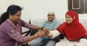 रामनगर। सामाजिक सौहार्द और आपसी प्रेम की मिसाल पेश करते हुए नगर के मोहल्ला बंबाघेर निवासी समाजसेवी डॉ. ज़फर सैफ़ी और पूर्व सभासद रूबीना सैफ़ी ने रक्षाबंधन पर्व पर अपनी हिन्दू बहनों से राखी बंधवाई।