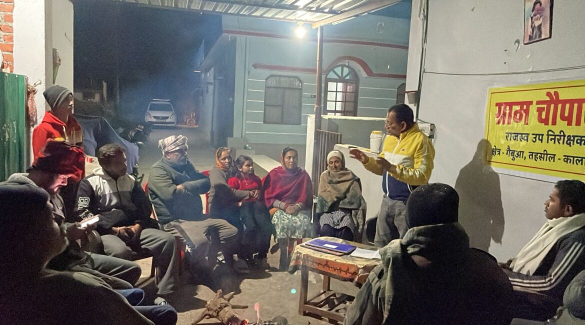 जिलाधिकारी नैनीताल ललित मोहन रयाल के आदेश एवं एसडीएम कालाढूंगी विपिन चंद्र पंत के निर्देशों के क्रम में यह अभिनव पहल शुरू की गई है। राजस्व उप निरीक्षक तारा चन्द्र घिल्डियाल द्वारा लगातार रात्रि चौपालों का आयोजन कर सर्द रातों में अलाव के बीच ग्रामीणों की समस्याएं सुनी जा रही हैं और मौके पर ही निर्विवाद उत्तराधिकार के प्रकरण दर्ज कर उनका निस्तारण किया जा रहा है।