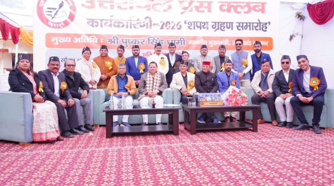 मुख्यमंत्री ने नवनिर्वाचित अध्यक्ष श्री अजय सिंह राणा, वरिष्ठ उपाध्यक्ष श्री गजेन्द्र सिंह नेगी, कनिष्ठ उपाध्यक्ष सोबन सिंह गुसाई, महामंत्री श्री योगेश सेमवाल, संयुक्त मंत्री श्री शिवेश शर्मा, श्रीमती मीना नेगी, कोषाध्यक्ष श्री मनीष डंगवाल, सम्प्रेक्षक श्री विजय जोशी एवं कार्यकारिणी सदस्य श्री वीरेन्द्र डंगवाल ‘पार्थ’, श्री मनमोहन लखेड़ा, श्रीमती रश्मि खत्री, सुलोचना पयाल, श्री मनोज सिंह जयाड़ा, श्री हरीश थपलियाल, श्री मनबर सिंह रावत, श्री ओम प्रकाश जोशी, श्री  हिमांशु जोशी को पद एवं गोपनीयता की शपथ दिलवाई।
