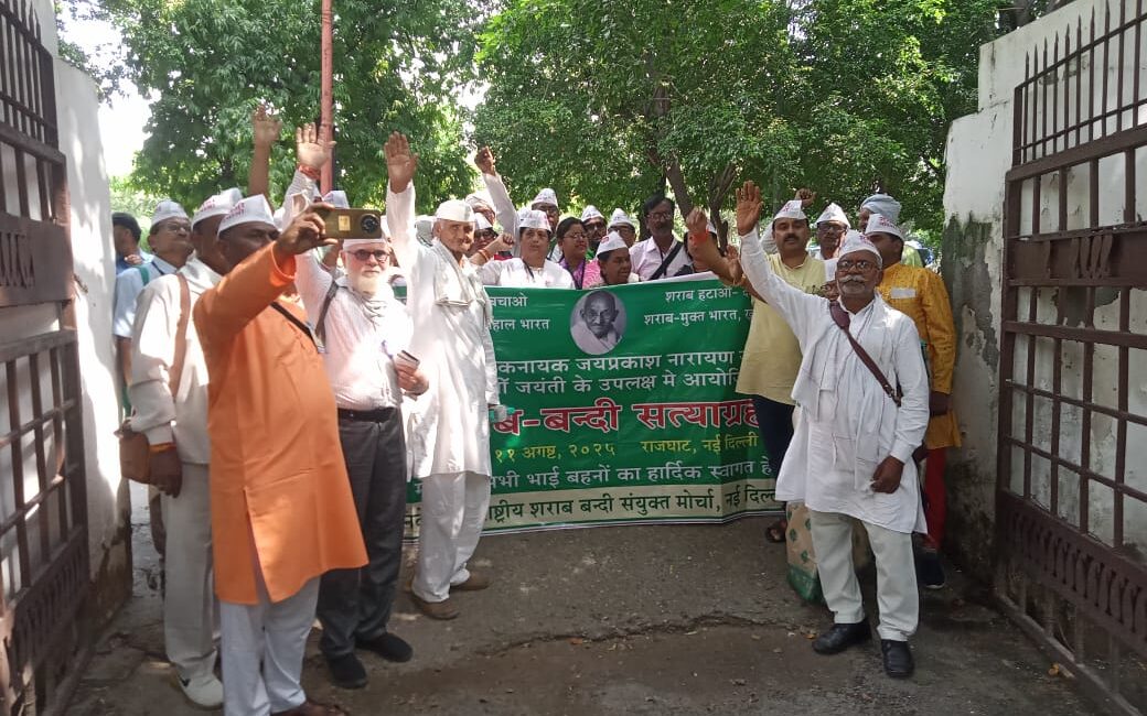देशव्यापी शराबबंदी की मांग को लेकर राजघाट पर सत्याग्रह।