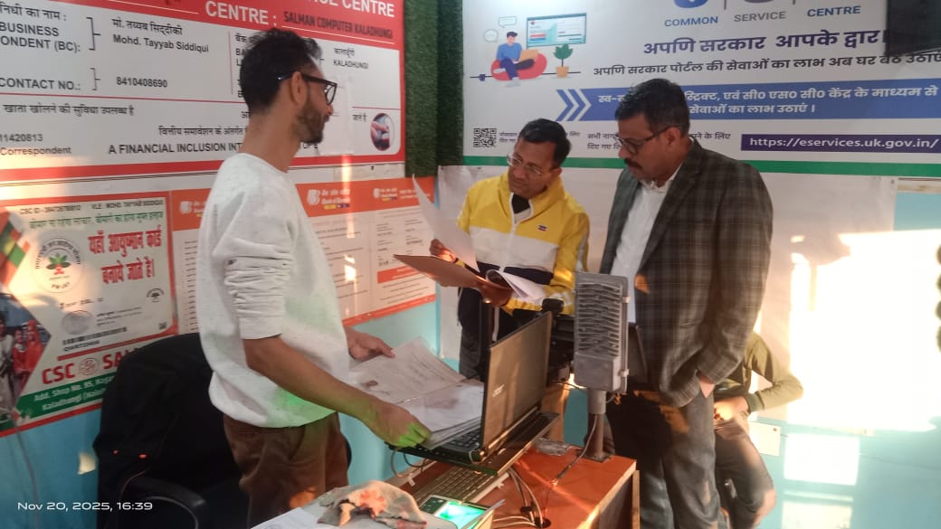 उप जिलाधिकारी बिपिन चंद्र पंत ने क्षेत्र के तीन कॉमन सर्विस सेंटर (CSC) का औचक निरीक्षण करते हुए केंद्रों की कार्यप्रणाली, सेवा गुणवत्ता और नागरिक सुविधाओं की गहन समीक्षा की। निरीक्षण के दौरान संदेह के आधार पर सलमान कंप्यूटर सेंटर से 26 आधार कार्ड कब्जे में लिए गए, जिन पर पृथक नोटिस जारी किया जा रहा है।