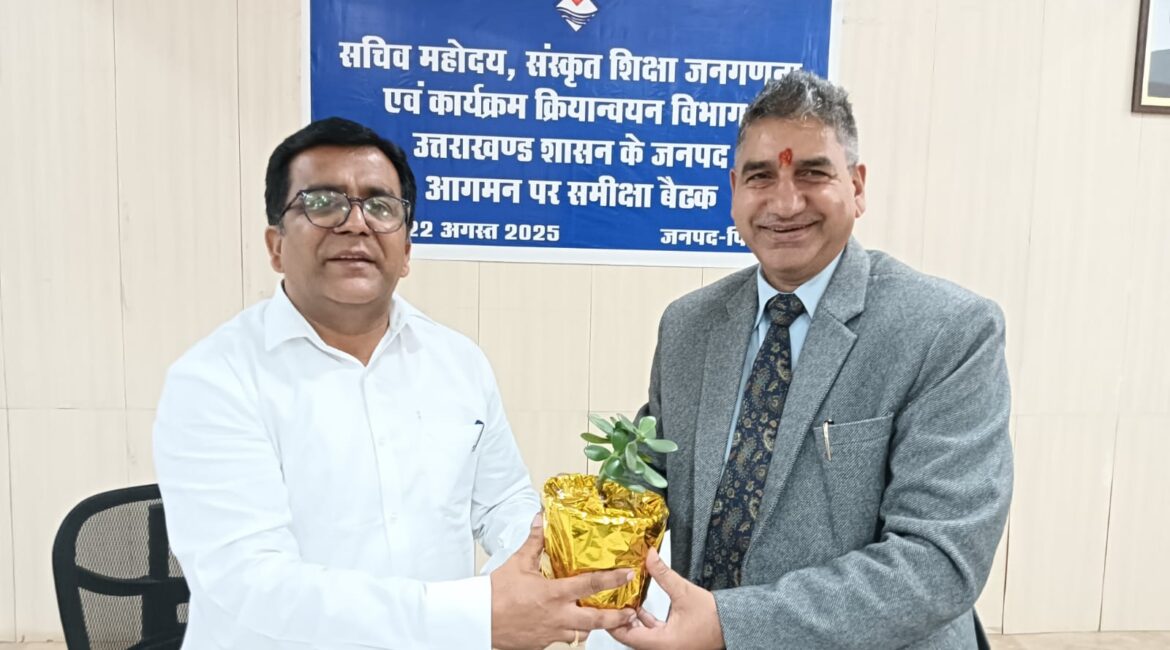 सचिव संस्कृत शिक्षा दीपक कुमार का जनपद भ्रमण, योजनाओं की समीक्षा व संस्कृत ग्राम का निरीक्षण।