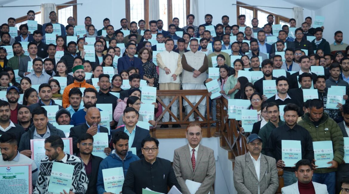मुख्यमंत्री पुष्कर सिंह धामी ने गुरुवार को मुख्य सेवक सदन में ग्राम विकास विभाग के अंतर्गत अधीनस्थ चयन सेवा आयोग के माध्यम से चयनित 394 ग्राम विकास अधिकारियों के पद पर नियुक्त अभ्यर्थियों को नियुक्ति पत्र प्रदान किये।