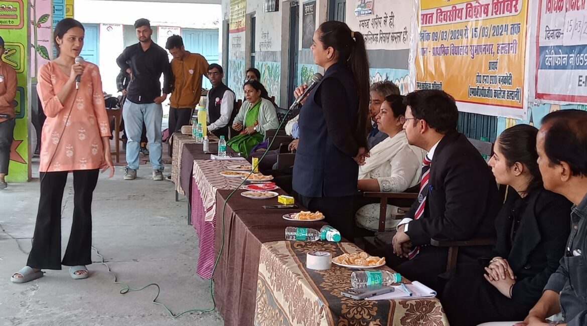 पी एल वी श्रीमति नीमा जोशी द्वारा जिला विधिक सेवा के कार्यकलाप, निशुल्क विधिक सहायता, एल एस एम एस, एल ए आई एस पोर्टल,नालसा टोल फ्री नंबर 15100 के बारे में छात्रों को जानकारी दी गई । कार्यक्रम में एम बी पी जी कॉलेज के डायरेक्टर, प्रोफेसर भाकुनी, प्राथमिक विद्यालय सुभाष नगर के पदाधिकर्गण भी उपस्थित रहे।