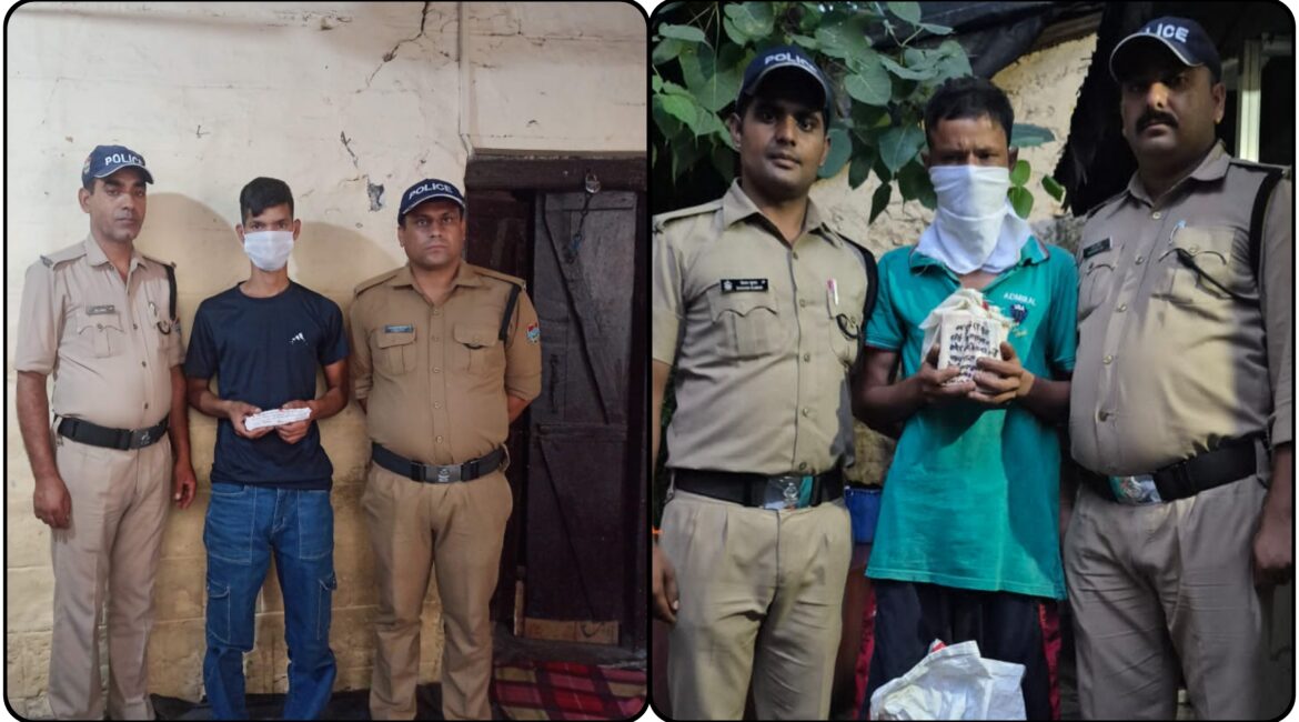 पुलिस की दोहरी कार्रवाई: नाजायज चाकूधारी और 96 पाउच अवैध शराब के साथ दो गिरफ्तार।