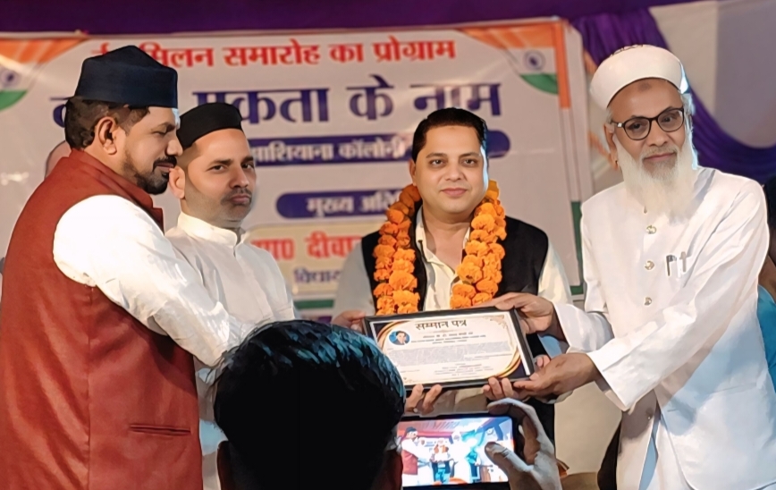 “एक शाम कौमी एकता के नाम” थीम पर आयोजित ईद मिलन समारोह में सामाजिक सौहार्द और भाईचारे की अनूठी झलक देखने को मिली। कार्यक्रम में विधायक समेत कई जनप्रतिनिधियों और सामाजिक कार्यकर्ताओं को कौमी एकता सम्मान पत्र देकर नवाजा गया।